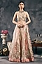 Featuring a multi-colored pastel lehenga in shimmer organza base with gota embroidery. It is paired with a halter blouse and a dupatta. Accentuate it with statement earrings, a clutch and block heels for weddings or sangeet ceremonies.
