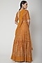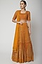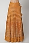 Featuring an ochre lehenga in chikankari base with mirror embroidery. It is paired with a matching blouse and dupatta.