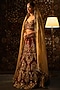 Featuring a red lehenga in velvet base with metal and zardosi work. It is paired with a blouse and a dupatta. Accentuate it with statement earrings, a sleek low bun and metallic heels for a bridal ensemble or weddings.