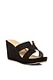 Featuring a pair of black sandals in zarina fabric base with a glitter upper. It has a leather underlining and 3 inch wedges heels.