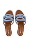 Blue Textile Leather Strappy Slip-On Flats