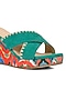 Featuring a pair of green cross strap wedges in leather base with pattern detailing. It has a leather lining and 3.5-inch heels.