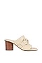 High cut ivory mules for the high brow girl. The round veneer-covered heel and the round belt buckle wrapped in a leather lace are inspired by latest fashion trends.