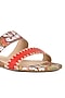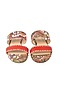 Featuring a pair of red flats in textile base with floral print, hand crocheted slip-ons and red bands. It has a leather lining.