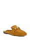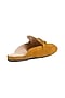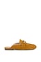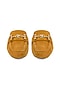 Featuring a pair of tan slip-on loafers in suede base with metallic trim. It has a leather underlining.