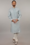 Featuring a blue kurta in silk base with embroidery. It is paired with contrasting cotton silk churidar pants.