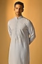 Featuring an aqua blue kurta in silk base. It is paired with pants. Accentuate it with kolhapuris or embroidered juttis, perfect for pooja ceremonies, festive gatherings or cultural celebrations.