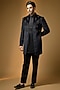 Featuring a black indowestern in velvet base. It is paired with a kurta and pants. Style it with mojaris for a festive occasion, sangeet, wedding or engagement ceremony.