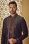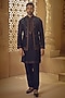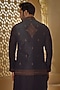 Featuring a blue bundi jacket in raw silk base with thread embroidery. It is paired with a kurta and pants. Perfect wear for a wedding, sangeet or engagement ceremony, exuding elegance and charm.