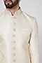 Featuring a blush pink sherwani in blend silk base. It is paired with matching churidar pants.