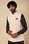 Featuring a nude blush nehru jacket in raw silk base. It is paired with a pocket square. Style it with a kurta set and a pair of mojaris for wedding or pooja ceremonies.