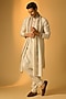 Featuring a cream kurta in silk base. It is paired with pants and a stole. Accentuate it with kolhapuris or embroidered juttis, perfect for pooja ceremonies, festive gatherings or cultural celebrations.