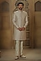 Grey Pashmina Silk Blend Zardosi & Resham Embroidered Sherwani Set