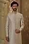 Featuring a grey sherwani in pashmina silk blend base with zardosi and resham embroidery. It is paired with pants. Perfect wear for a wedding or engagement ceremony, exuding elegance and charm.