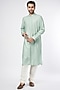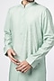 Featuring a mint kurta in blended silk base with embroidery. It is paired with matching churidar pants.