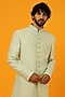 Featuring a mint sherwani in silk base with hand embroidery and digital embroidery. It is paired with pants. Perfect wear for a wedding or engagement ceremony.
