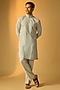 Featuring a mint green kurta in silk base. It is paired with pants. Accentuate it with kolhapuris or embroidered juttis, perfect for pooja ceremonies, festive gatherings or cultural celebrations.