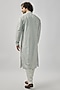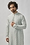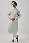 Featuring a mint grey kurta in chanderi silk base with digital embroidery. It is paired with churidar pants. Perfect wear for festive occasions or pooja ceremonies