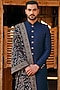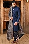 Featuring a navy blue sherwani in silk and silk blend fabric with textured embroidery. It is paired with matching churidar pants. This contains only two pieces.