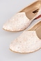 Featuring a pair of peach mojari shoes in silk base with embroidery. It has a processed leather underlining. These are perfect for any occasion and provide comfort at the same time.