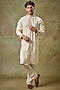 Featuring a pearl white kurta in silk base with pashmina embroidery. It is paired with pants. Perfect attire for festive occasions or pooja ceremony, exuding traditional charm and elegance.