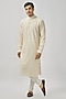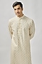 Featuring a pearl white kurta in soft silk base with tonal digital embroidery. It is paired with churidar pants. Perfect attire for a festive occasion or pooja ceremony.