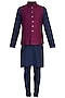 Purple Tanchoi Bundi Jacket with Kurta and Churidar Pants