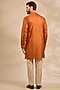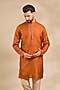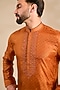 Featuring a rust kurta in silk base. Style it with pants and kolhapuri sandals for a festive occasion, family gathering or intimate pooja ceremony, exuding charm and elegance.