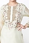 Featuring a mint tunic in organza base with embroidery. It is paired with a matching banarasi sharara pants having boota work.