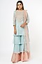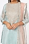 Featuring a powder blue short kurta in organza base with dori work. It is paired with matching chiffon layered sharara pants and a contrasting dupatta.