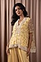Featuring a yellow cape style tunic in organza and satin modal base with print and hand embroidery. It is paired with patiala pants. Accentuate it with statement earrings and heels for a festive occasion.