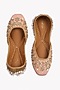 Featuring a pair of bubblegum pink juttis in raw silk and heavy linen with kundan, pearl, cutdana embroidery . It has a tanned leather sole.