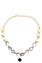 Featuring a matte gold plated handcrafted necklace with black mother of pearl gemstones and black onyx stone, set in customized metal alloy.