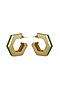 Featuring a pair of 22kt gold plated green enameled hexagonal hoop earrings, set in brass. Perfect for brunch dates, casual outings, office wear or evening get-togethers.