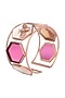 Featuring a rose gold plated statement hand cuff inlayed with hydro pink quartz and white mother of pearl semi precious stone, set in customised metal alloy. One of the stones has a bee center, which will add the element of surprise to a bland outfit. Handmade In India.