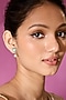 Featuring a pair of 18kt gold plated stud earrings studded with green stones, set in 92.5 sterling silver. It has a screw back closure. Perfect for any festive occasions or pooja ceremony.