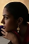 Featuring a pair of 18kt gold plated jhumka earrings studded with moissanite, semi-precious stones and pearls, set in 92.5 sterling silver. Ideal for weddings, festive celebrations or formal evening occasions.