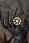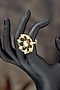 Featuring a 18 kt gold plated ring studded with moissanite polki, zirconia diamonds and dark green glass stones, set in 92.5 sterling silver. This ring is ideal to wear for any occasion or an outing.
