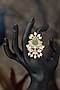 Featuring a 18 kt gold plated ring studded with moissanite polki, green carved stones, pearls and zirconia diamonds, set in 92.5 sterling silver. This ring is ideal to wear for any occasion or an outing.