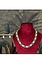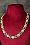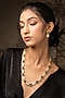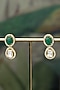 Featuring a 18 kt gold plated long necklace studded with moissanite polki and green synthetic stones, set in 92.5 sterling silver. It is paired with a matching pair of earrings. This necklace set is ideal to wear for an outing or pooja ceremony.