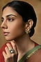 Featuring a pair of 18kt gold plated handcrafted stud earrings studded with moissanite polki and navratna stones, set in 92.5 sterling silver. Ideal for weddings, festive celebrations or formal evening occasions.
