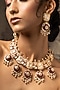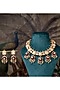 Gold Plated Moissanite Polki & Pearl Beaded Enameled Necklace Set In Sterling Silver