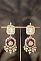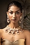Featuring a 18 kt gold plated red enameled necklace studded with moissanite polki drops, red stones and pearl beads, set in 92.5 sterling silver. It is paired with a matching pair of earrings. This necklace set is ideal to wear for an engagement or a wedding ceremony.