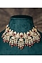 Featuring a 18 kt gold plated necklace studded with moissanite polkis, red stones, red glass beads and pearls, set in 92.5 sterling silver. It is paired with a matching pair of earrings. This necklace set is ideal to wear for an engagement or a wedding ceremony.