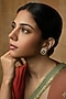 Featuring a pair of 18kt gold plated stud earrings studded with moissanite polki and ruby stone, set in 92.5 sterling silver. Ideal for weddings, festive celebrations or formal evening occasions.