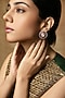 Featuring a pair of 18kt gold plated handcrafted stud earrings studded with moissanite polki and ruby stone, set in 92.5 sterling silver. Ideal for weddings, festive celebrations or formal evening occasions.