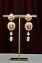 Featuring a 18kt gold plated handcrafted choker necklace studded with pearls, moissanite stones and green semi-precious drops, set in 92.5 sterling silver. It is paired with a matching pair of stud earrings. This necklace set radiates timeless elegance, perfect for wedding celebrations, festive soirees or cultural gatherings adding a regal charm to every look.