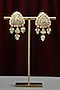 Featuring a 18kt gold plated handcrafted choker necklace studded with motifs, pearls moissanite stones and green semi-precious drops, set in 92.5 sterling silver. It is paired with a matching pair of earrings. This necklace set radiates timeless elegance, perfect for wedding celebrations, festive soirees or cultural gatherings adding a regal charm to every look.