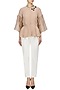 Featuring a nude peplum top in crepe with birds embroidered and bugle beads-bugs highlighted and pleated sleeves checkered organza sleeves.