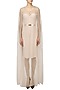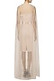 Featuring a nude front open floor length organza cape with pearls gradation highlights.